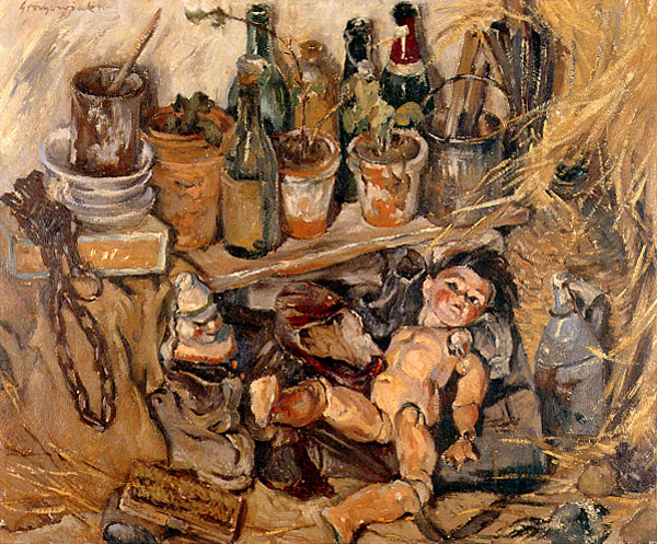 Thomas Grochowiak Stilleben mit Puppe (Die Ausgebooteten)1946, Öl auf Hartfaser, 65 x 80 cm © Thomas Grochowiak