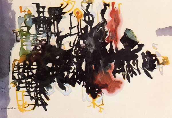 Thomas Grochowiak Zu „Des Knaben Wunderhorn“ – Sinfonien von Gustav Mahler 1960, synthetische Tusche, 51 x 73 cm © Thomas Grochowiak