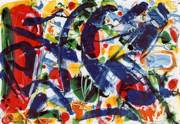 Thomas Grochowiak Nach Mozart: Allegro aus dem Hornkonzert Es-Dur KV 447 1990, farbige Tusche auf Fabriano, 45 x 64 cm © Thomas Grochowiak