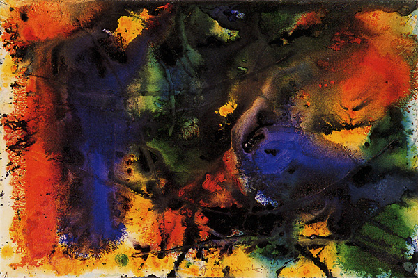 Thomas Grochowiak Nach Claude Debussy: Sonate für Flöte, Harfe und Bratsche II 14. Juni 1995, farbige Tusche auf Fabriano, 31 x 46 cm © Thomas Grochowiak