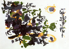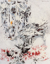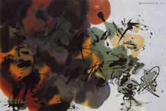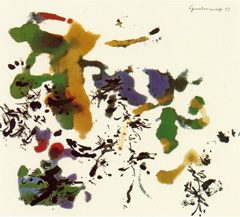 »Seit 1956 zielen meine Malaktionen immer wieder dahin, das Schwere zum Schweben zu bringen – Aktivität und Spontaneität, die sich in automatischer Pinselschrift durch Zeichen und vegetative Strich-Bündelungen äußern, mit in sich ruhenden Formen zu spannungsgeladenem Zusammenklang zu führen.«